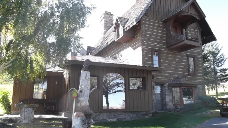 Unique and impressive hand selected, Montana Fir (Heart-Wood) log home is one of a kind masterpiece. Complete with hand built 67 foot, chiseled stone fireplace and wood spiral staircase. Living space upstairs is inclusive of a country kitchen with separate fireplace, library, and master bed and bath, appointed with a steam room and Jacuzzi bath, antique doorknobs and hardware, European double glazed and stained glass windows with surrounding peaceful and relaxing porches. The complete property is situated on 120 acres (+/-) with 1/4 mile of river frontage. The land is rich with oil rights, high grade Bentonite, historic artifacts and folklore, artesian well, and ponds for irrigation. Additional structures includeand not limited to.an oversized barn, spacious bunk house or studio, corral, hayloft, wine cellar, tack room and pump house. Fall in the love with life on the prairie and the Old...