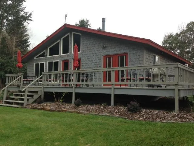 This wonderful home is situated on the infamous Missouri River. The home has been completely remodeled with many high end features and attention to detail. There is an elaborate two-way rock fireplace, granite counter-tops, hardwood flooring, custom cabinets with designer finishes, exquisite slate & travertine baths, including fossil fish inserts, high-end fixtures, and a bidet. The home has air conditioning, cedar shingle siding, a garage with a guest room, and soaring ceilings.
