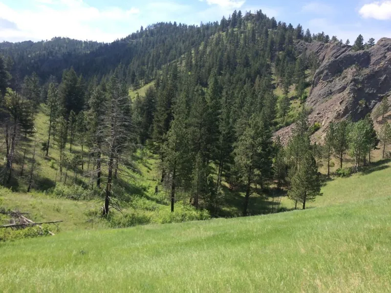 Unique to this property is a terrain that is more common on Forest Service public lands: extremely unique rocky outcroppings, steep drainages, springs, live seasonal water, and an abundance of wildlife such as trophy elk and mule deer, big horn sheep, black bear, cougar, and upland game birds. This one-of-a-kind private holding is ideally setup for a hunting camp.