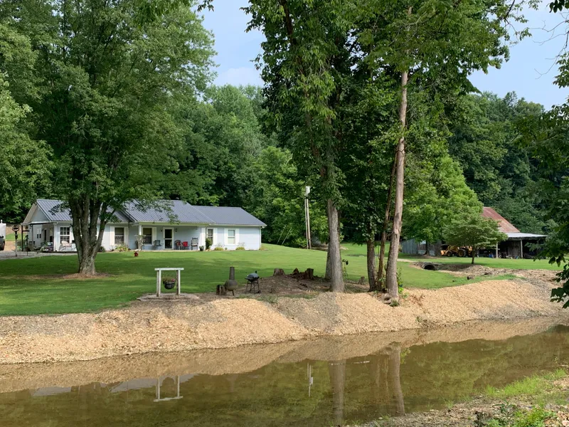 Pulling into the property gives you the feel of a state park setting. Crossing Hatter Creek leads to the property surrounded by mature shade trees in the front yard. To the left pulling into the driveway is one partially fenced pasture with the second pasture with the pond being on the right end of the property. Between these fields is an older barn currently being used for storage of farm equipment. A chicken coop is also located next to the field on the right. So much to offer you must see this in person to appreciate all it has.