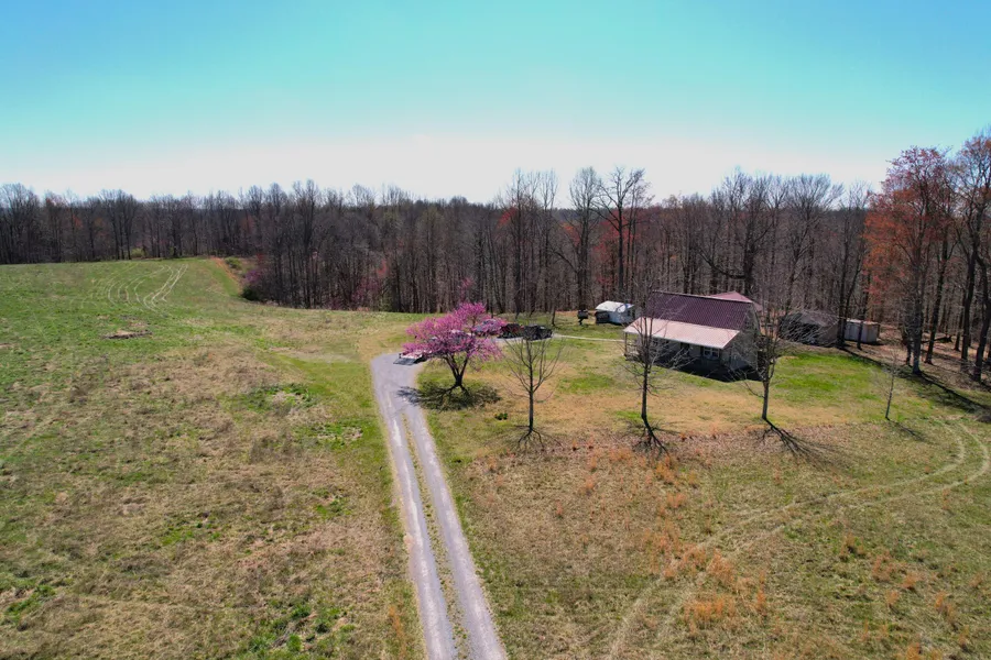 Country home built in 2007 sitting on approx. 47 acres of private land in Casey County Kentucky. The home features two bedrooms, one bath and approx. 1,440 square feet of living space. Entering the front door leads to the open living room and kitchen space. Lots of room for couches or sectional in this area. The kitchen has lots of cabinet and counter space along with stove, refrigerator, microwave and dishwasher that will remain with the home. Next to the kitchen is a large laundry room that leads to the full bathroom. The first floor has one bedroom with the topfloor having the second bedroom along with an additional storage room. The home was originally built with an open vaulted ceiling however the sellers laid a floor on the second level and produced more storage space. This floor could be removed if you had rather have th...