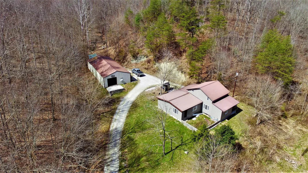 Up for online auction is this wood frame 3 bedroom twobath home sitting on 3.85+/- acres in Casey County Kentucky. The home was built in 1950 and has approx. 1,871 square feet of living space per local PVA. On the main level you will find a master bedroom with attached master bathroom, two large family rooms/living rooms, an open kitchen and a laundry room with second bath included. The second level has two additional rooms along with storage space. The 30'x70' metalbuilding was being used for a woodworking shop complete with concrete floor, two roll up doors and a loading dock. For heating the property has anoutdoor wood furnace.