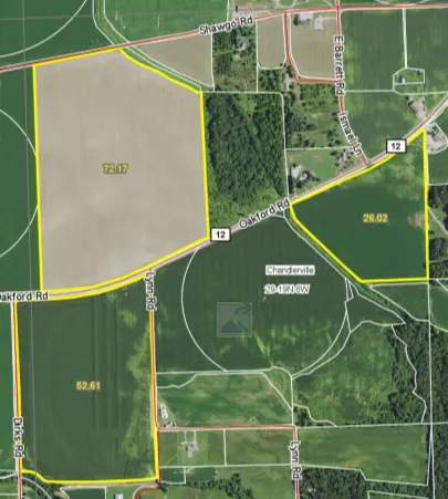 Research Parcel InformationLocation: 4.5 miles SW of Oakford or 7.5 miles NE of Chandlerville in Cass County, Illinois (Sec29-T19N-R8W). Approximately 20 miles from a major grain terminal in Havana.