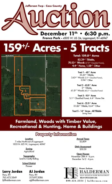 Legal Description W1/2 E1/2 SW1/4, Section 11; E1/2 SW1/4 Section 14; Part NE1/4; Township 27 North; Range 1 West; Jefferson Township, Cass County, State of Indiana, containing 159.777 acres