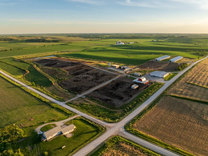 The ranch consists of a total of 800 acres, with 725 tillable acres with an overall CSR2 of 78.2. Located 1 mile east of Highway 71 along the West Nodaway River, JDH Wagyu is an operating feedlot positioned as a turn-key business with significant improvements and highly productive cropland. The feedlot includes a newly built office, maintenance and storage building, two 35'x335' monoslope pen barns, a 3 bedroom and 2,995 square foot home, processing barn, commodity sheds, feed hoppers, equipment storage, 28 exterior pens, over 7,500 linear feet of steel pipe fencing, and over 2,800 linear feet of concrete feed bunks. Another significant improvement is the high-output well that serves as the primary water source for the farm, pumping 40 gallons per minute. A public water meter is also on the property. Multiple waterers are spread throughout the cattle pens, barns, and main building. There is a third-party manure management program in place, where the owner receives income for selling manure and staying in compliance with EPA and DNR regulations.