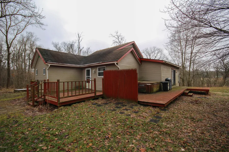 Enjoy country living in this secluded Farmhouse located on almost 3 acres, with a 2 car detached garage, also including a large pole barn with concrete floors and electric. The home offers master bedroom on main level, Spacious living room with pellet stove, open kitchen and dining area with the convenience of the main floor laundry room as a bonus. Call today for your showing.
