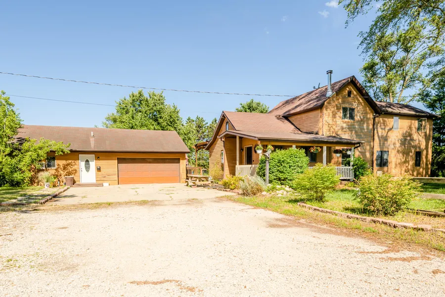 Just over a mile from Magician Lake and Dewey Lake, this striking SEVEN bed, THREE full bath residence stands on 1.28 acres with a two car garage, a full 1 bed apartment with its own bathroom and living room, an enormous above ground pool with its own deck, two extra storage sheds, a regal covered front porch and a beautiful back deck, pergola, and fenced-in yard. Internet is through MEC Fiber Optic! As you go in the front door, you're immediately greeted by the enormous kitchen regaled by the cherry cabinets, its own island, garden window and a glass door that opens out onto the back deck, pergola and fenced in yard. Main level laundry with access to back deck. The vast dining room leads from the kitchen to the huge living that can easily fit quite a bit of furniture. When it comes to main level bedrooms, we have a-plenty. The den and the craft room can be bedrooms as well as they have great-sized closets and doors. Wrapped with shelves, the den could be the office, the library, or t