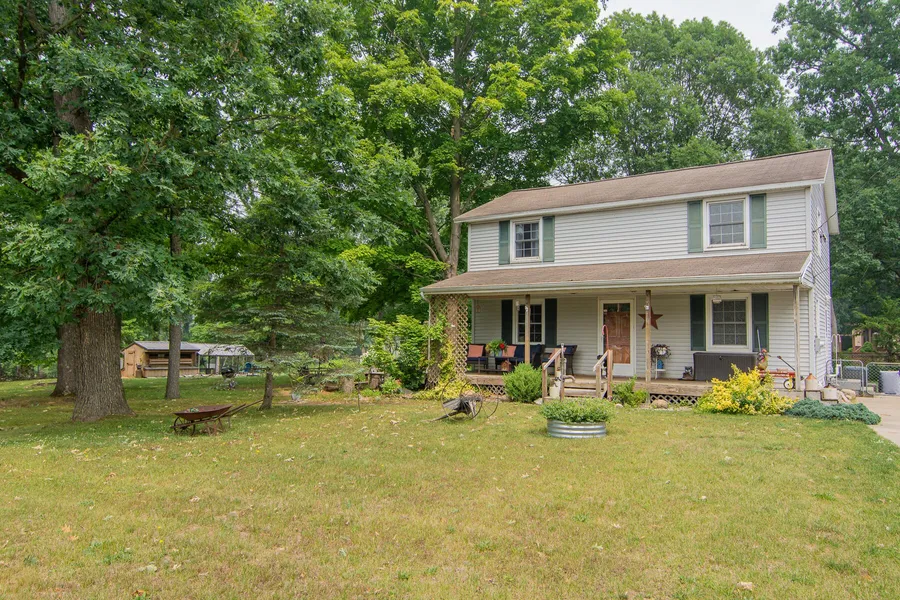 Nice two story home in Howard Township on .60 acre corner lot. Hardwood floors throughout the whole house, and replacement windows. Main level has living room, formal dining room, kitchen and 1/2 bathroom. Kitchen has a pantry. All appliances stay with the house. Laundry currently on main level, can be moved back to the basement. Three bedrooms and a full bath located on upper level. Full basement is partially finished - Fenced backyard. Seller currently has chickens - coop, run and stones around the coop are excluded from the listing. Water softener, 12 month home warranty being offered by Seller.