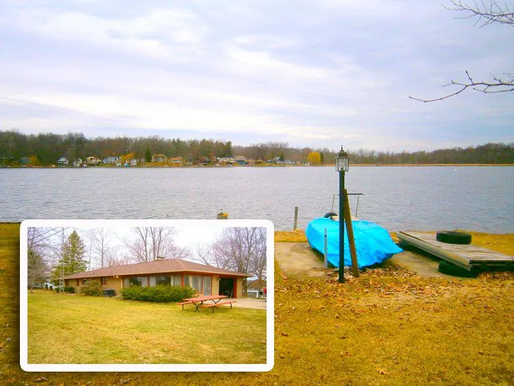 ONLINE REAL ESTATE AUCTION June 23, 2015 from 8 am - 2 pm. Opening Bid only $10,000. This property features a 1,125 square foot brick home and boat house with 40' of frontage on Finch Lake. The brick home includes 2 bedrooms with a possible third, 1 1/2 baths, larger living room, kitchen with dining area, 4-season room, and an attached 1-stall garage. The home has a full block basement and the furnace, water heater, AC heat pump, roof and upper chimney were all replaced within the last few years and the property has city sewer. The appliances, including the washer and dryer, are included. Also included is a 24' x 24' garage with concrete floor and a larger concrete aproach to the garage which provides ample parking. Across the private drive from the house is a 480 square foot converted boat house with electric heat, sliding glass door and dock overlooking 40' of private lake frontage...