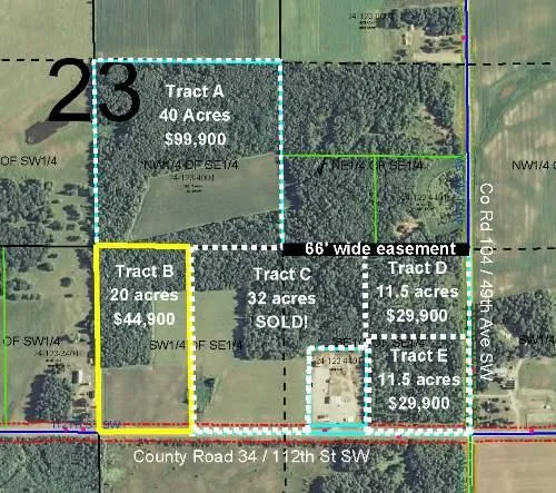 This 20 acres of land in the heart of the northwoods of Minnesota is nearly all upland and has a combination of beautiful heavily-wooded areas and a nice, large field. The property is right on Co Rd 34/112th St SW and is close to Pillsbury State Forest and Gull, Sylvan, Pillager, and Rock Lakes. The land would be great for hunting, recreation, or a home site. The property is perfectly located to enjoy the charm and amenities offered by both Pillager and the Brainerd/Baxter area. Purchase this tract individually or add one or more of the adjacent tracts also for sale. Seller may also consider alternative configuration(s).