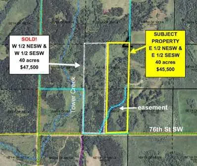Just minutes from Leader and the famous pig races, you'll find this 40 acre parcel nestled between Staples and Pillager. Remote area but a popular destination for fantastic hunting, fishing, four-wheeling, snowmobiling, and endless outdoor activities. This property has pine and mixed hardwoods on rolling to level terrain. There is a hill toward the middle of the property along the east line, a small wetland in the SE corner, and a larger wetland area on the north end. The property has frontage on 76th St SW, but it could also be accessed via an easement that will be retained along an existing trail commencing in the adjacent property to the west and leading through the south part of this property.