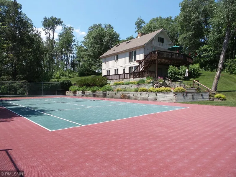 On Green Hill Bay in the heart of premier resort area. Chalet style w/regulation sized sport court for tennis, basketball and shuffleboard. Blocks from world class golf and dining with entire Gull Lake Chain at your doorstep. Large lakeside deck; paver patio; tiered gardens with waterfall; 2 brick fireplaces; loft bedroom; beach shed, 13 section "h" shaped dock, Shorestation lift, walkout w/full bath & 2nd kit; Quiet wake free zone bay-ideal for paddleboarding and kayaking. Check out Drone Video