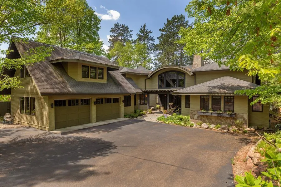 Timeless design & exceptional detail have gone into this stunning luxury lakeside retreat on lovely Lake Margaret. Nestled along the shoreline of red pines & gently sloping lake shore, you'll find yourself marveling at the grand yet understated beauty. Stone, glass, wood, granite, concrete, bamboo, steel beams & walls of windows. An open floor plan with two-story great rm featuring floor-to-ceiling flagstone wood burning fireplace. 9' doors. Touch pad electronics & surround sound. Great for entertaining! Spacious open plan. Main floor owner's suite w/private deck & hot tub overlooking the lake.Professional-grade kitchen w/2 dishwashers, Wolf 6 burner range, double ovens, & prep space for the most discerning chef. Inspiring home offices with high-speed broadband. Thoughtfully designed 2 BR studio + 2 guest rooms. Elevator ready. Outdoor spaces: fireplace, screened porch, patios, playhouse...