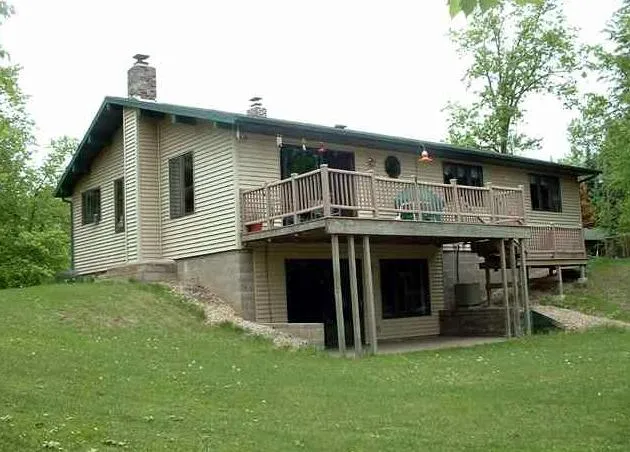 Privacy! Privacy Privacy!! 25 acres+- and 2000+- feet of Lakeshore on Induadona Lake. A wonderful and comfortable 3 beddroom 3 bath walkout vaulted ceilings and large garage blacktop drive. If you are looking for peace and tranquility this is it come and take a look. Comes with surveyed lots and extra garage and poll building.