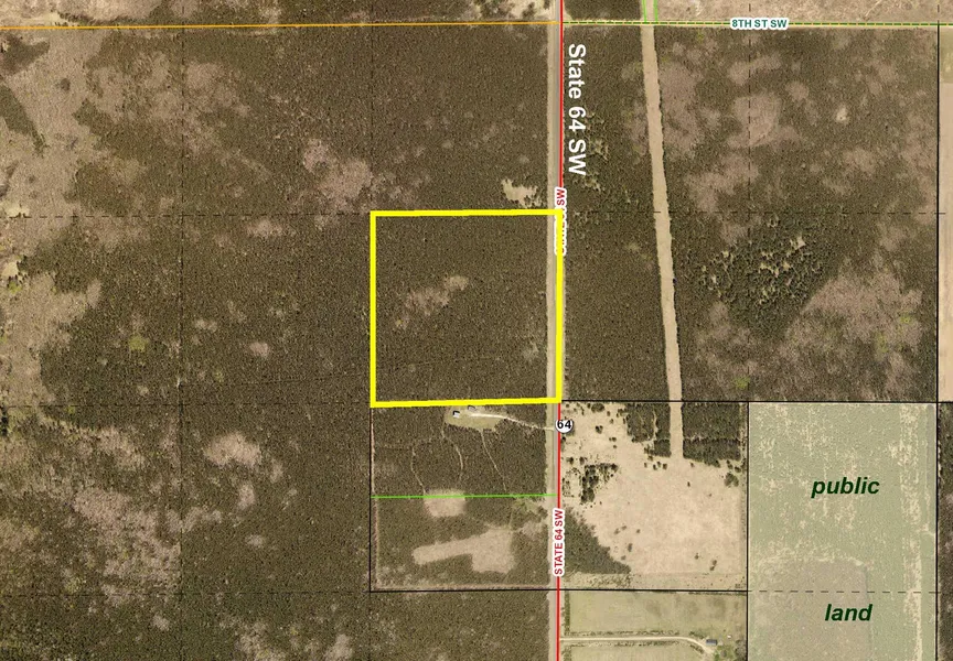 PotlatchDeltic land on State Hwy 64 south of Akeley. Level upland wooded with jack pine. Paved highway along the east side and a trail running east-west through the south half. Public land nearby offers more space for hunting and other recreational activities. Utilities are available, so this could be a great location for you to build a country home or cabin.