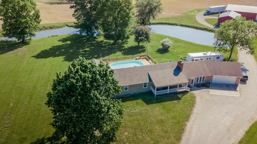 What a great opportunity to enjoy country living on an income producing property. The meticulously maintained, four bedroom 2 ½ bath home, is perfect for a growing family. The very large master suite has his and her walk-in closets and bathroom vanities. Two family areas and a partially finished basement provide enough room to entertain guests and ample amounts of storage. The pool and large deck is a great place to enjoy nature at its finest, and can be accessed from the master suite, second bedroom and dining room. One of the sellers favorite activities is watching the abundance of wildlife while enjoying their morning coffee on the deck. Both outbuildings offer a great place to store equipment and work on projects, making this the perfect set up for running a business from home. There is a very large population of resident deer and turkey that frequently visit the back yard. While I was walking the property multiple groups of ducks attempted to land in the two slough lakes that are well stocked with fish. The property itself offers 38 acres of highly productive bottom ground, with the remaining in mature hardwood timber. The east branch of South Grand River laces through the farm further enhancing the park like atmosphere. The hunting opportunities are endless and many very large bucks have been seen. Two grassy meadows could easily be converted into food plots, making late season hunting that much better. This property sits just outside of Peculiar, with great access to Highway 49 and has an incredible amount of value to offer.
