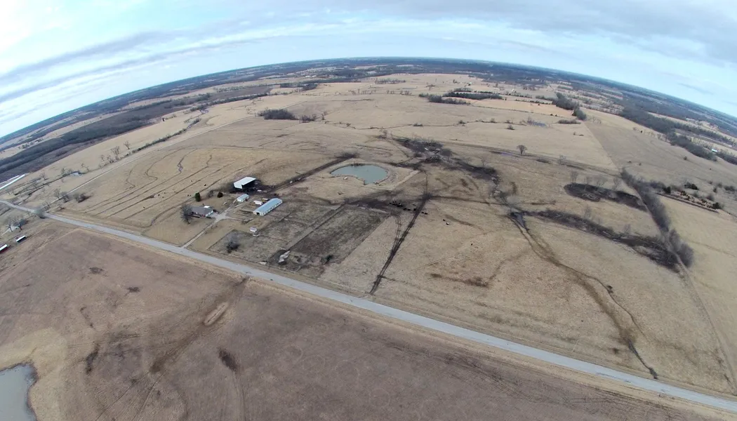 Custom Built 4 bedroom 3 1/2 bath all Brick Ranch with a finished basement on 80 acres m/l. 2 Fireplaces. All electric with propane backup generator. 3 Car attached garage, Shop & a large hay/equipment barn. Lots of pipe fence & cross fenced. A true working cattle farm. 16 Stall horse barn with pipe Arena. Waterers with electricity. Spring fed water & Rural water meter at the road. 1/2 Mile Blacktop frontage. Drexel Schools.