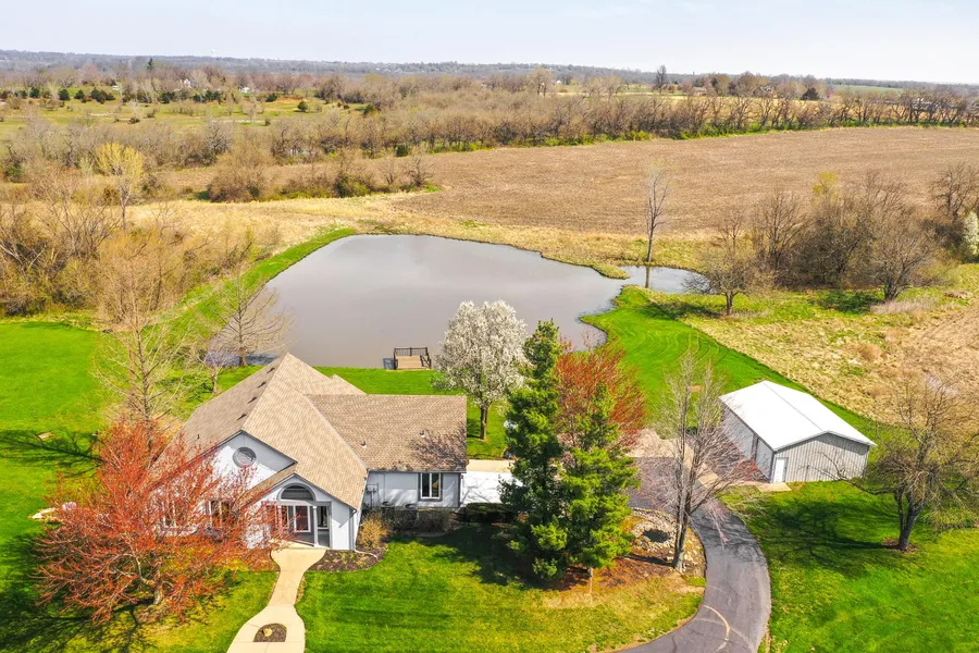 PRICE REDUCED ON THIS UNIQUE 98+/- ACRE FARM WITH HOME/OFFICE, 3 CAR DETACHED GARAGE, 70 x 40 OUTBUILDING, 2 NICE PONDS & 70 ACRES OF CROPLAND! The ranch home is completely set-up as a business/office on the first floor with a reception area, conference room, 5 separate offices, cubicle area, and half bath. Lower level features complete living quarters with open floor plan, new carpet and paint, kitchen/dining, living room with fireplace, three bedrooms, laundry room, two full baths, sun room and walks out to huge patio. Gorgeous views! This property is perfect for a home based business, family compound or farm. So many possibilities here! Income from tenant farmer pays for taxes and more!