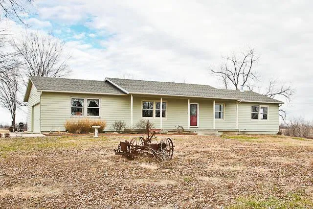 PRICE REDUCED! Enjoy country paradise close in! 4 Bedroom 3 bath Ranch has all you need on 17 acres m/l! Partially finished full basement w/workshop & laminates though out home. Newer roof, lower level garage entry & walkout. Site built home with a 30X50 metal outbuilding. Bring your family & retire on this hobby farm. Clean & fresh-ready for your personal touch! Ample room for your livestock + wildlife-deer & turkey galore. KC Suburbs only 25 minutes north. Small town living w/the convenience of the Big City not far away... Great schools. All on blacktop!!!