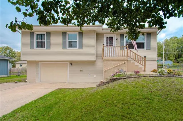 Raised ranch could be a fabulous starter home for under $200,000. Excellent opportunity to purchase your new home for less than rent! Be greeted by loads of light from the front windows in living room as you walk in. Home features 3 nice sized Bedrooms and one full bath with easy access from Master Bedroom or Hallway. You will love the kitchen with plenty of cabinets and pantry space for extra storage PLUS all appliances stay. The formal Dining Room overlooks the deck which offers a fenced backyard and Huge patio for perfect for entertaining family and friends. The basement has a finished office space and laundry room combo along with a recreation room has been started and could be easily finished. Just minutes to schools, area churches and downtown Harrisonville.