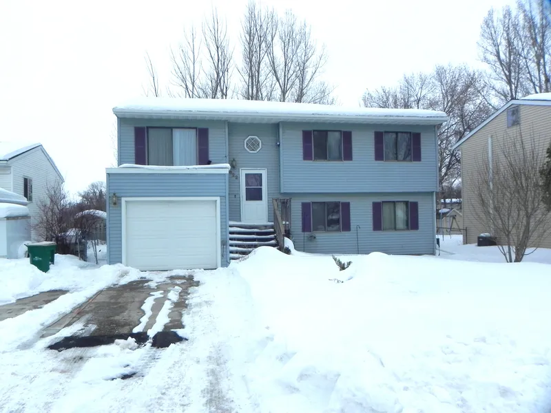 Here is a nice affordable 3 bedroom 2 bath home with no basement worries. Two story slab on grade home. Lots of extras to include - fully fenced backyard; extra long attached garage with shop bench; family room with bar; walkin primary closet; two storage sheds; two decks; dishwasher and freezer. Recent updates include some newer flooring and metal roof