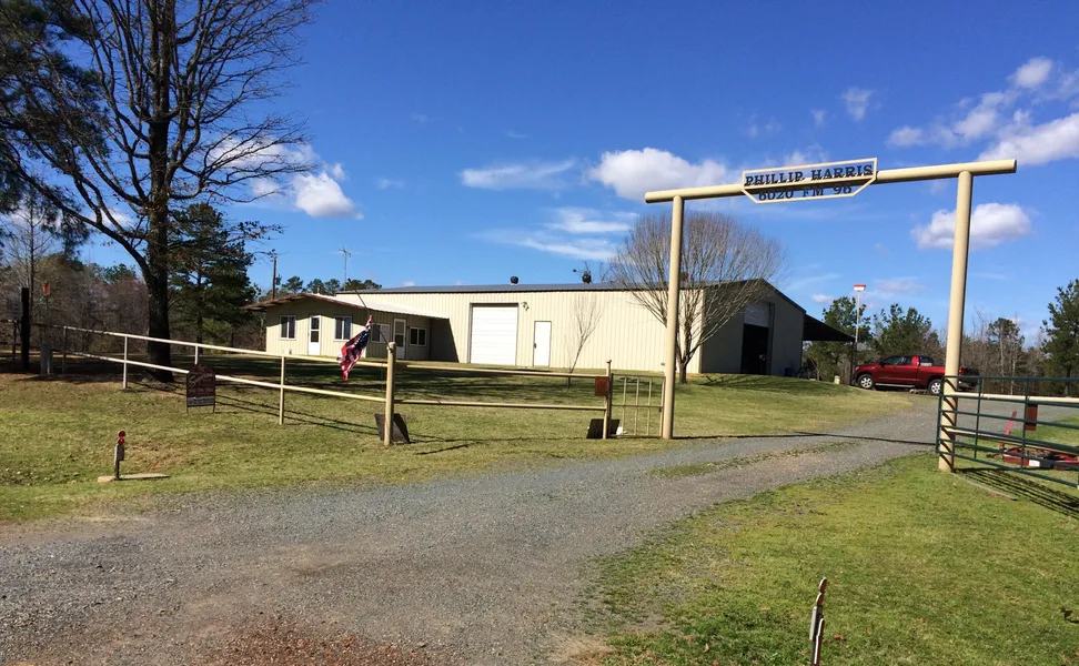 Unique metal home and shop combo, home features 1325 sq ft, large open kitchen and living area with additional living area. 2 bedrooms and one bath. Shop area is approx 1800 sq ft in shop area with 2 over head doors. 1500 sq ft carport attached to back of shop. Property also features pipe fencing across front. Seller is leaving all furnishings, dishes, etc. Shop has car lift, bench grinder, air compressor, shelving units, etc. Just 2 miles from Atlanta State Park. located in Queen City ISD.