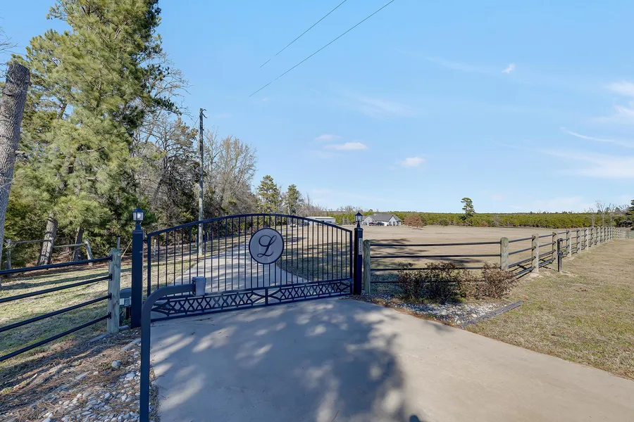 The property's privacy is ensured by the 570' winding driveway and the entrance through a secure gate off HWY 155. Your vehicles find protection from the Texas sun in the oversized, 2-car garage.