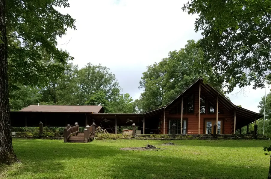 Immaculate Log Home sitting on 42+ Acres of mature hardwoods and pines. Overlooks a 9 acre spring fed lake with fishing pier. Unique home has large gourmet kitchen w/island, 2 separate living areas. Large wraparound deck & covered patio with great view of lake. Spacious screened in porch to enjoy the peace and beauty of this property. Also includes a 3/2 guesthouse located near main house. 1200 sq ft metal shop bldg with 2 10ftx40ft. lean to coverings; Private vineyard; Fenced garden; Misc. storage bldgs
