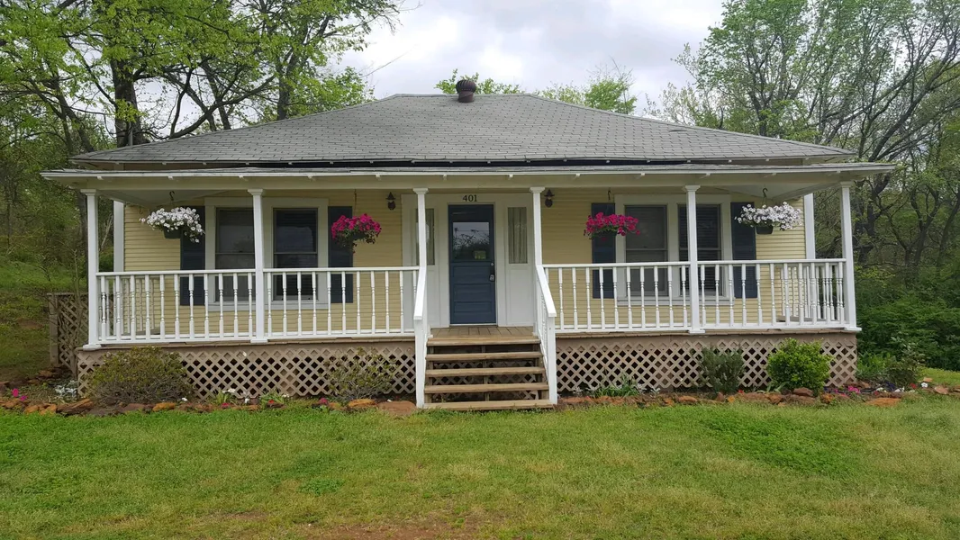 Behind this exceptionally charming front porch is a spacious and efficient home with entry hall, living room, dining room, two bedrooms, cozy den, L-shaped kitchen, laundry, and large bathroom with tub/shower. Central air and plumbing are fully updated. Fireplace in living room has gas insert. Remodeled kitchen has electric stove and large pantry. This comfortable and freshly painted home offers plantation blinds, ceiling fans and updated lighting throughout.
