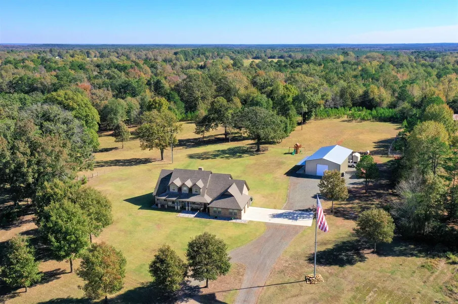 This quintessential American dream home can be yours! Beautifully laid out on 24.92 net wire fenced lush acres, this magnificent custom home, featuring 3 BR/2.5 Baths, radiates Southern style at its finest. Upon entering, grand beams accentuate the effortless flow of the open concept space. The meticulously maintained rooms welcome families to cozy up to the stone fireplace for game night or gather around the kitchens bar area to enjoy treats made by the stainless steel appliances and under the custom vent hood. Knotty Alder cabinetry is impeccably displayed with plenty of storage and granite countertop space for a gourmet spread. Escape to the oversized master suite, pass the large walk in closets with fantastic built ins, and sink into a bubble bath under a sparkling chandelier for ultimate relaxation. The dual sinks and vanity area of the master bath give ample space along with a walk in shower you have to see to believe. The indoor opulence is only rivaled by the view through the backdoor. The tranquility of the East Texas pines beckons outdoor lovers, and children will enjoy a gigantic yard for running in the great wide open spaces of the country. Spend your time entertaining guests rather than tending flowerbeds as the lovely rock laden landscaping is essentially hassle free! Steps away, a metal shop with a handy roll up door offers a stunning and spacious rustic interior. Gorgeous wood lines the walls and a large sink and guest bath make this the perfect place for parties. Tons of storage and fencing for farm life are bonus features of the property. Do not miss out on this incredible home place, just minutes from Texarkana in the coveted Queen City school district. You dream life awaits!