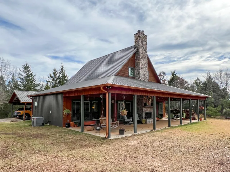 Beautiful custom built home on one of the highest points in Cass County is now available. The main home has 2189 sq feet with 2 master suites and a large loft. The guest house is 320 sq feet with a king size bed, sitting area, small sink and full bath. The main house was built in 2017. Boasting a 50 ft front porch with an outdoor fireplace, the perfect place to stay warm and watch the sunset at an elevation of over 400 ft. The split bedrooms have 9ft ceilings and hardwood floors that were milled onsite throughout the home. The kitchen is open to the dining and living area with a large farm sink, walk in pantry, double oven, and black sueded granite countertops. The large living area has 25+ ft ceilings and gorgeous stone fireplace. With a 2car oversized carport with a nice storage area all under one roof connected to the main house. The home has a full house generator, dual ac units, and...