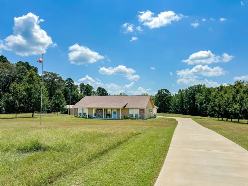 Picturesque property tucked away in the East Texas Pines! Retreat to 18.32 expansive acres under the big blue Texas sky in the heart of Linden. A beautiful custom home with rustic charm and stone detailing is nestled in the midst of the lush pristine pastures, old growth oaks, and wooded wildlife haven. The interior is the perfect blend of comfort and style with 2064 sq ft of luxury living space including 3 bedrooms and 2 baths. The open concept layout is warm and inviting and brimming with beauty from the natural light infused great room featuring a fireplace and the handsome stained concrete flooring. The sizable kitchen boasts modern appliances and gorgeous granite countertops with plenty of cabinet space. Attention to detail was given to the design of this home with an exquisite soaring staircase, tiled walk in showers and deep master closet. Views of the countryside can be enjoyed f...