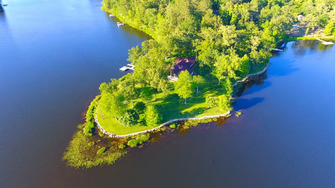 MOTIVATED SELLERThis secluded waterfront estate is immaculately established amid 2.14 lush acres on 250 acre private Eagle Landing lake. Touch down on the private airstrip and enjoy the abundant wildlife from one of two piers on the property. A pristine 2860 square foot estate awaits with incredible panoramic views of the water. 3 Bedrooms, 3 Baths, Sunroom, Office, Family Room, Great Room, Loft, Open Kitchen, Connecting Master Bath and Laundry. Outside boasts a working Greenhouse, RV Awning, Boat Dock, Concrete Landscaped Retaining Wall lines three sides of the property. Many more luxuries are part of this exclusive package.