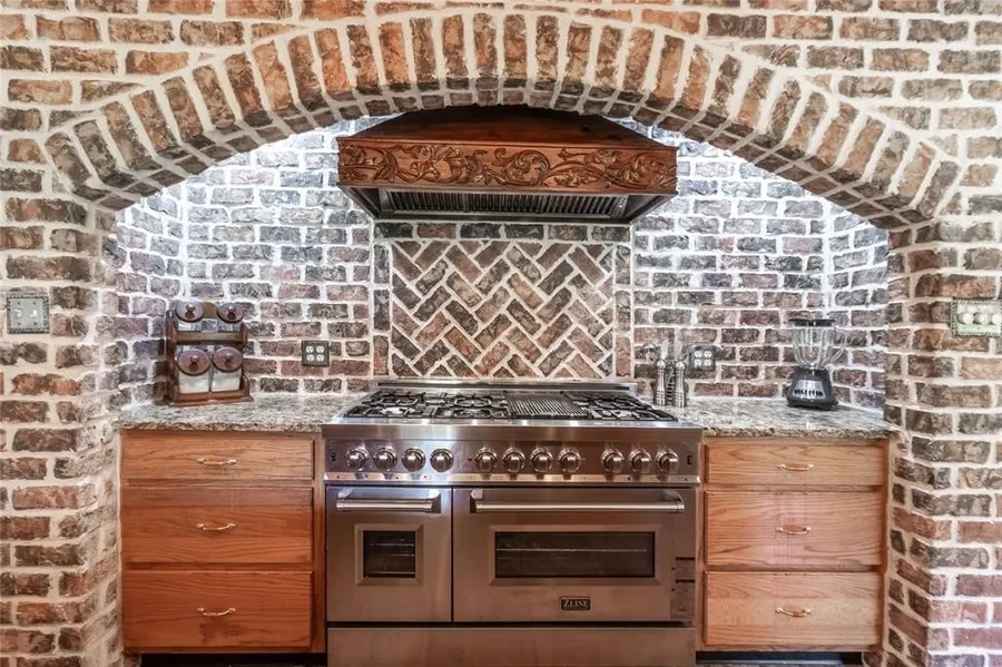 This waterfront home is nestled among stately oaks and pines on a gorgeous 26 acre lake. Enjoy the spectacular lake views from the living room and large open patio. Enjoy a fireplace with a heatolator for a cozy winter. This unique property has three bedrooms and an extra family room that could be a fourth bedroom with a full bath. The kitchen has been beautifully updated in Tuscan style, featuring a brick arch over the commercial-grade 48-inch oven with gas cooktop, griddle and grill. It also features a double electric oven and custom vent-a-hood. The six-burner cooktop, granite countertops, and a farm sink make this a true chef's delight! It is open to the oversized laundry room with ample storage for your extra cooking items. The primary bedroom has a gorgeous view of the 191 foot shoreline. Outside, you will find an air-conditioned workshop with a roll up door to bring t...