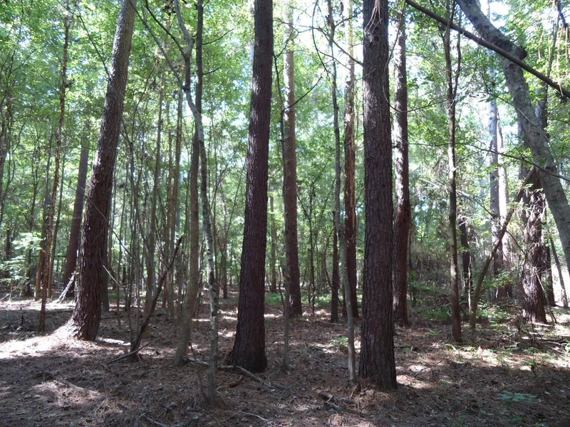 A professional forestry firm handled a selective thinning harvest in 1999, and eighteen years of growth since the last harvest has produced a substantial inventory of marketable forest products. A timber volume estimate made in 2012 showed a good volume of pine and hardwood timber, being more than two truck-loads of sawtimber and pulpwood per acre. Many of the pines are impressive in their size and height.