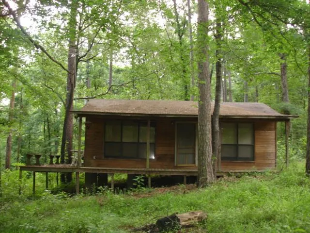 Weekend cabin on The Homeplace Lake in Hughes Springs, directly across the street from the lake. The property includes many other possible homesites. Secluded.