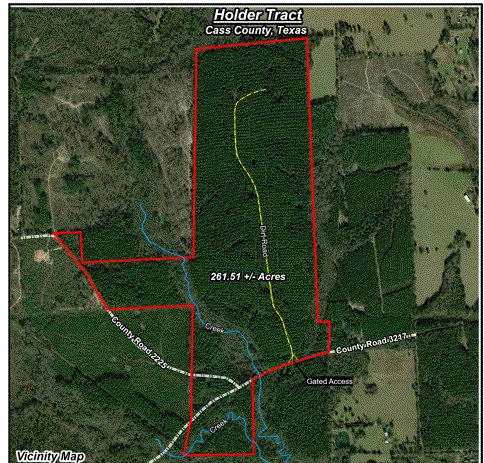 A rare East Texas Timberland Investment Tract! This Texas Timberland and Hunting Land Tract offers 261 acres of Highly Productive timber stands with County Road Frontage and all-weather internal road system!