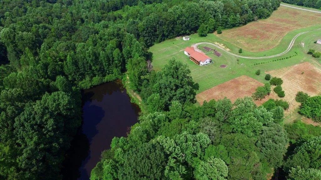 Country Cottage 12+ ac on private pond w/ No HOA, no restrictive covenants, no RMA. Centrally located b/w Triangle & Triad. 1472 GLA sq. ft w/ add. detached 14x19 heated office space.