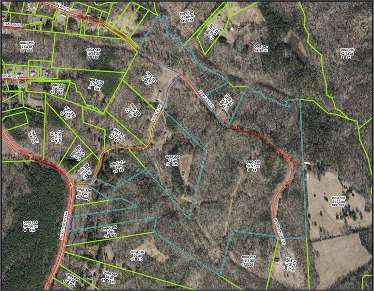 Large track of approximately 98.97 ac (determined by tax office records of deeded acreage from recorded documents- NO SURVEY!). Terrain varies. Mainly wooded. Potential for secluded home site or has development potential with lots of road frontage. Community offers restrictive covenants which denotes new construction to be off frame modular or stick built. Covenants also reference RMA.