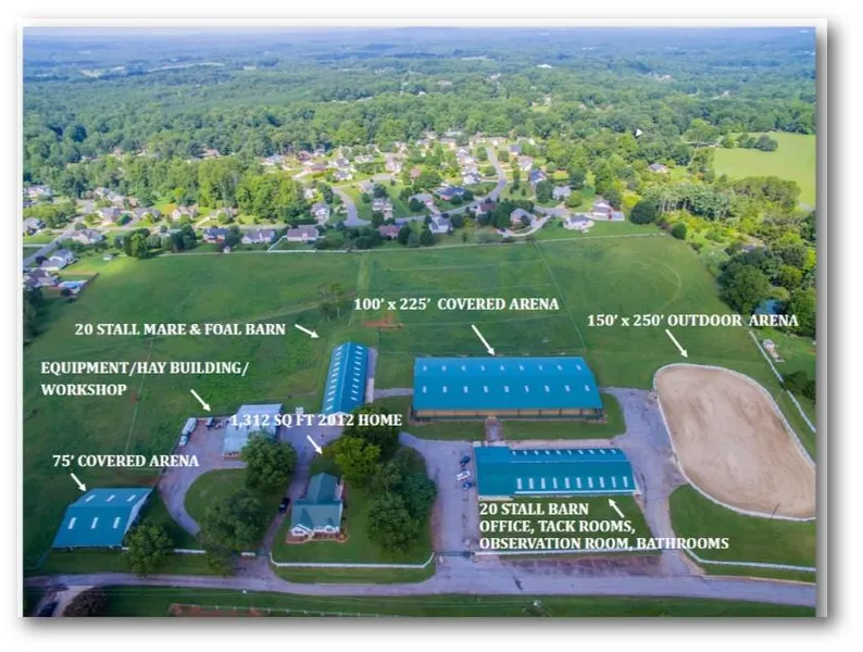 The main barn has so much to offer it will take two or more walks through to determine all of the improvements and upgrades. All will be kept dry for years to come since the metal roof is only 3 years new. Business can be conducted in the main floor spacious climate controlled office or the second floor climate controlled observation lounge. The main floor office is ideal for use as a show office, boarding office or boarders loung...