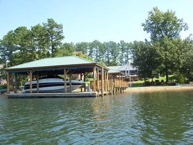 Oversized garage has built in cabinets,overhead storage,epoxy floor,& wired for generator.Well maintained pier,gazebo,& covered floating boat house with 6000 lb lift,water,electricity,& roll down awnings.
