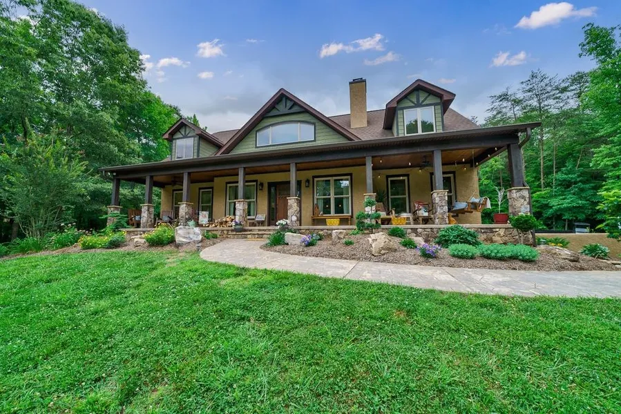 A stunning private enclave w/builder/owner craftsman designed home on 14.47 acres. A gated entrance, newly paved meandering driveway past the pastures & creek to the craftsman-style house. Accents include hand-hewn timbers & trim, wide plank pine floors & natural stone. Floor to ceiling stone fireplace in 2 story great room w/catwalk open to 2nd floor, gourmet kitchen w/granite, tile, prep sink & pot filler. Lower-level offers a rec room w/entertaining wet bar, FP & built-ins, concrete reinforced safe room, 2nd mud room & flex room. 2nd level has 2 guest rooms w/baths & a bonus rm. Outdoor living w/pool & patio, hot tub w/pergola, fire pit & built-in gas grill. Over the porte-cochere is an office/hobby room. A large 2-bay workshop & adjacent RV/vehicle storage, small animal barn/chicken coop w/fenced pasture, a 2nd fenced pasture w/access to the stream & shade, a 3-stall barn w/a clubhou...