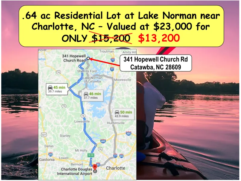 Research Parcel InformationTake NC-16 towards Lake Norman. Turn east onto E NC-150 and drive 2.5 miles Mount Pleasant Rd and turn left. Drive on Mount Pleasant Rd 4.8 miles to Sherrills Ford Rd and turn left. Drive 1.4 miles to Hopewell Church Rd and turn right. Drive 3.5 miles and the property is on the left.