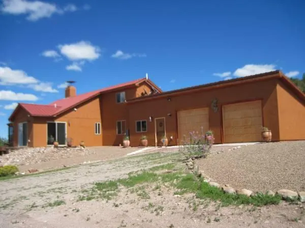Fabulous Hacienda on 12.16 acres, price reduced to sell. Home & Casita situated in quiet cul-de-sac, trees & views to Sawtooth Mountains, this custom built 2,585 square foot main house was completed in 2011 and has been kept in immaculate condition. Additionally, there is a 510 square foot Casita for your guests which has 1 bedroom, 1 bath, a studio (could be another bedroom), and a large veranda with just breath-taking views! The house & guest house both sell with much of the furniture and are move-in ready. The main house's ground floor has radiant heat underneath its ceramic tile floors throughout the house, and as a back-up there is also a baseboard heat unit in the living room, plus a wood burning fire place and a vent for an additional wood stove if the buyer wishes to install one. The master bedroom with bath, living, dining and kitchen are on the main floor, and there is a second bedroom or office upstairs. An over-sized garage contains a sauna. Outside on the wrap-around porch there is a 4-seater hot tub. The deck wraps the house on 3 sides of which the northern portion is a 7'x18' covered and screened deck which makes a very peaceful sitting area with very appealing views. The custom kitchen features custom made New Mexico Travertine counter tops. You enter the house through a heavy solid wood entrance door into a 195 square foot mud room.