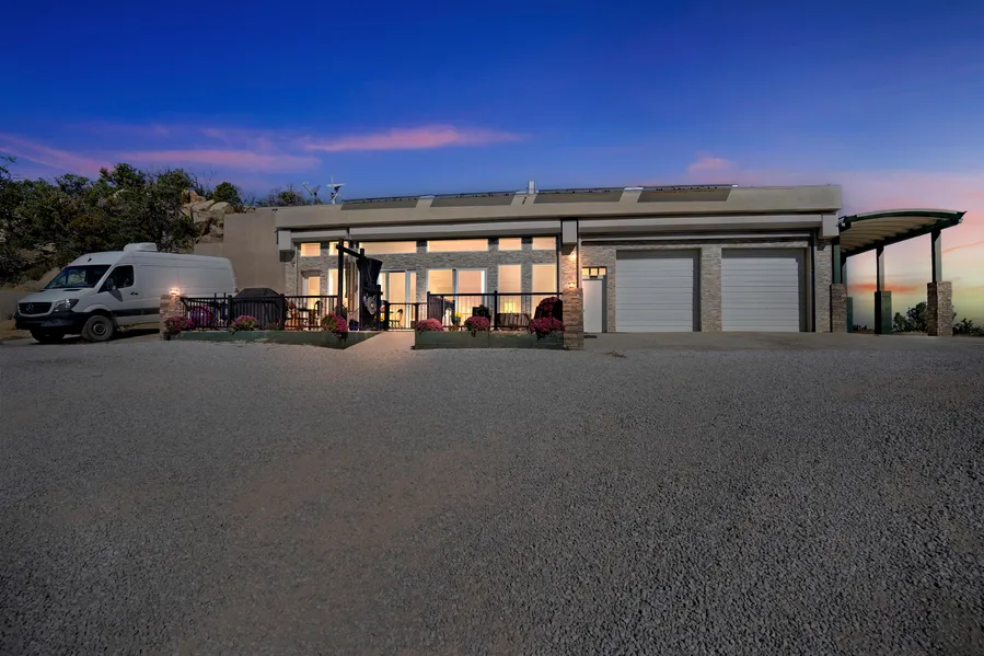 ULTIMATE PREPPER OFF GRID COMPOUND NESTLED HIGH INTO THE MAGNIFICENT BOULDERS..... TWO HOMES ON 40 ACRES. Recent PRICE reduction !!!!! Here you will find 2 Homes located on 40 acres of pristine land, Located near the terminus of Webb Ranch Rd the homes sit high on a bluff that provides a great field of view. The main residence is 2,200 + square foot and is built into the side of the ridge line. The exterior walls are 12" ICF's (forms filled with concrete and rebar) to withstand any type weather or conditions. the home is cool in the summer and warm in the winter with a state of the art Wood stove. SECURITY is accomplished by the entire front glass area having automatic heavy gage metal roll down doors to wall off when gone or in an emergency. An electric gate to enter this home is in place. The solar system is oversized at 12.2 KW at 48 volt DC and complete with a 22 KW propane back up g...