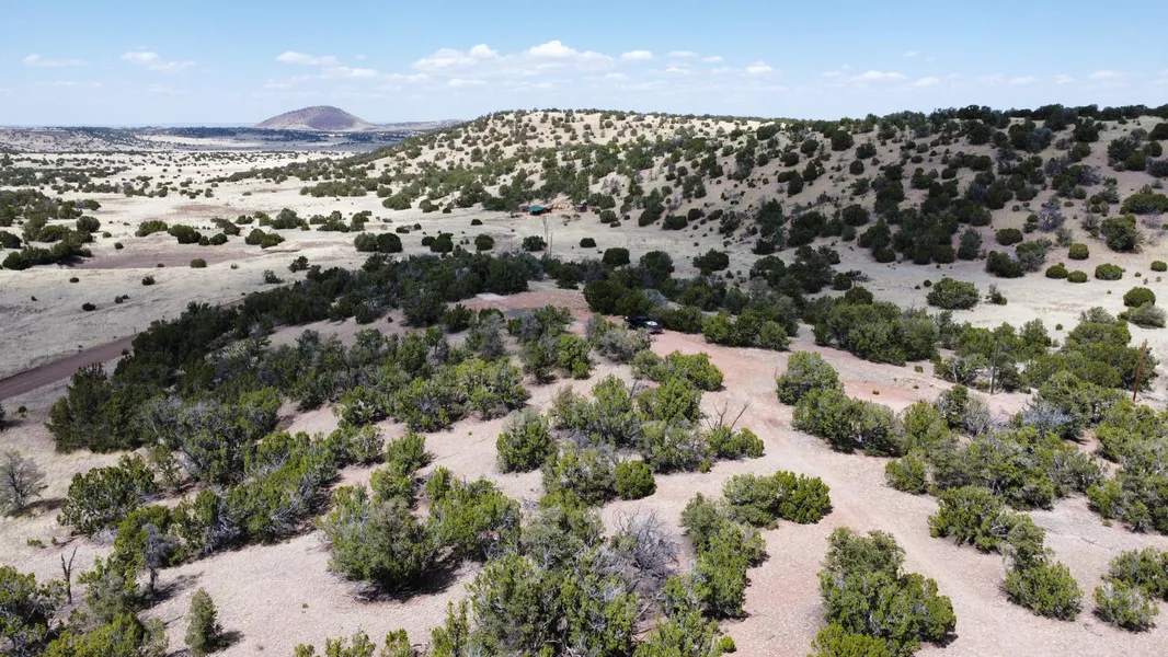 A unique opportunity for an elevated lot with fantastic views and utilities! Perched on top of a knoll this 8.2 acre lot offers privacy and views. A driveway has been cut into the property leading to two building pads.Plenty of level room at the top of the knoll giving way to gently sloping hills with Juniper and Pinon makes for a great setting for a home or RV getaway. Electric has been brought in to two places on the property. RV plug ins are in place. Septic is in place with an RV dump on level ground.