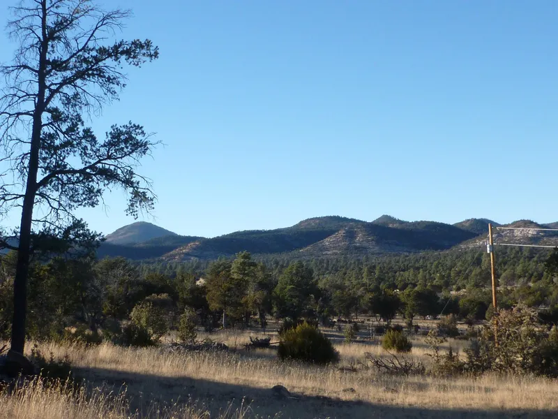 The 5.0 acres is fenced on 3 of the 4 sides. There are beautiful pine, oak, pinion pine and juniper trees all over the property.