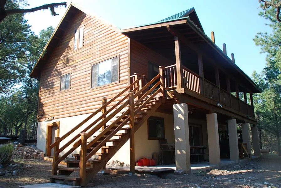 The house is bright with many views through the trees to the mountains of the Apache Forest which offers an abundance of elk, and where hunting is excellent. There is a 1-bedroom guest quarter downstairs, and on the main level is a gorgeous country kitchen, dining room, a large living room with a wood burning stove that heats the entire house and finally, another guest bedroom.