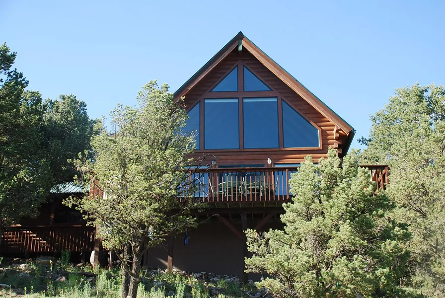 A covered access connects the house with an insulated log-built 1-car garage with workshop space. Detached from the cabin is a 32'x42' 3-door garage on 6" slab, insulated, 3 pull-up garage doors, one being 8' high for your RV, back and side entrances, 100A 3-phase.