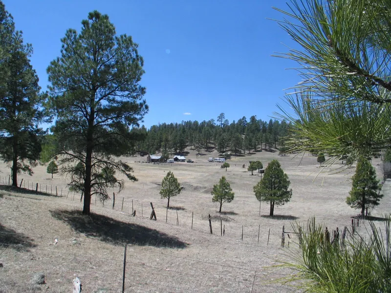 Absolutely spectacular 80 acres located just south of Luna NM in some of the most beautiful country in New Mexico. This property has 80nearly flat acres with huge ponderosa pines, secluded pristine niches, long meadows, and still immediate highway access. All kind of wildlife inhabit the area including elk, deer, bear, and turkey. Property could qualify for an annual elk permit if applied for and won. This wonderful property offers so many possibilities for your home, and could include more than adequate area for barns, stables, arenas, and even a runway for your airplane, plus a hanger. Located a half hour from Reserve NM which can provide most of your needs, and a paved runway to fly in to. Also a half hour from Alpine AZ and on to Arizona's lakes. The property does offer a house, most likely built in the early 1900's, currently rented. Also barns and storage buildings. If you're looki...